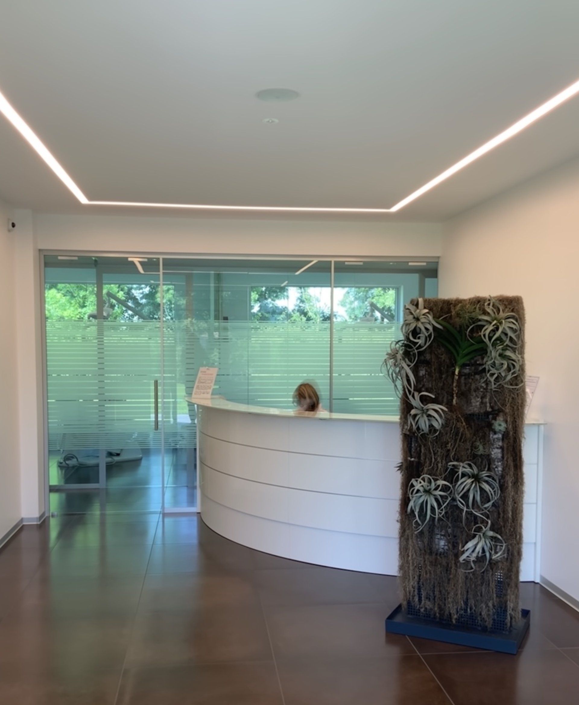 Gli ambienti, ampi, insonorizzati e ben illuminati, si affacciano sul verde che circonda interamente lo studio.